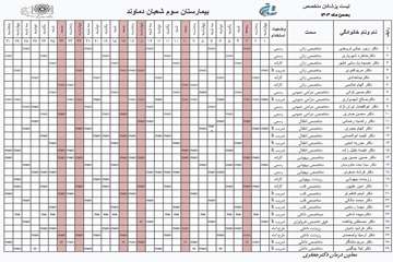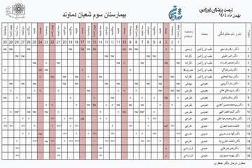 برنامه پزشکان بیمارستان سوم شعبان دماوند ( دی ماه 1404 )